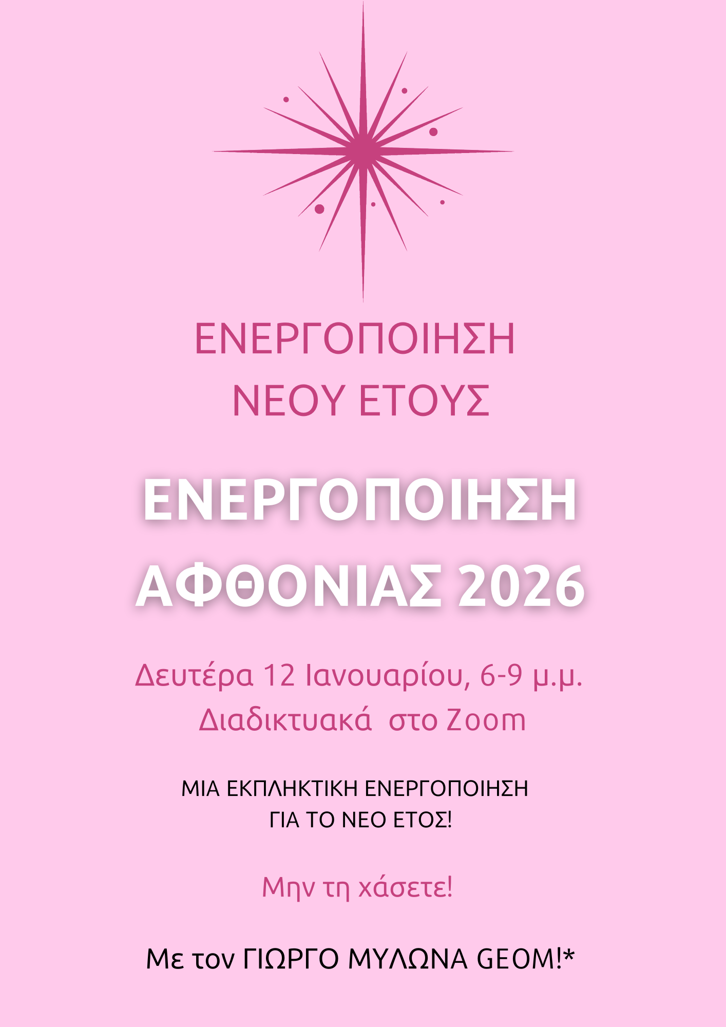 Ένα μοναδικό, διαδικτυακό, τρίωρο σεμινάριο με τον Γιώργο Μυλωνά, για την Ενεργοποίηση και τη Θετική Φόρτιση του Νέου Έτους! Πλημμυρισμένο από φως και δύναμη!